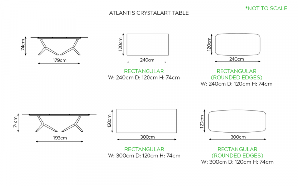 Size | Rectangular – W: 240cm D: 120cm H: 74cm, Rectangular – W: 300cm D: 120cm H: 74cm, Rectangular (Rounded Edges) – W: 240cm D: 120cm H: 74cm, Rectangular (Rounded Edges) – W: 300cm D: 120cm H: 74cm |