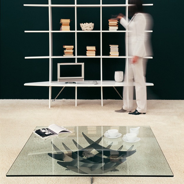 A striking round, square or oval coffee table with a transparent clear glass top, the Atlas features a steel base in a choice of finishes.