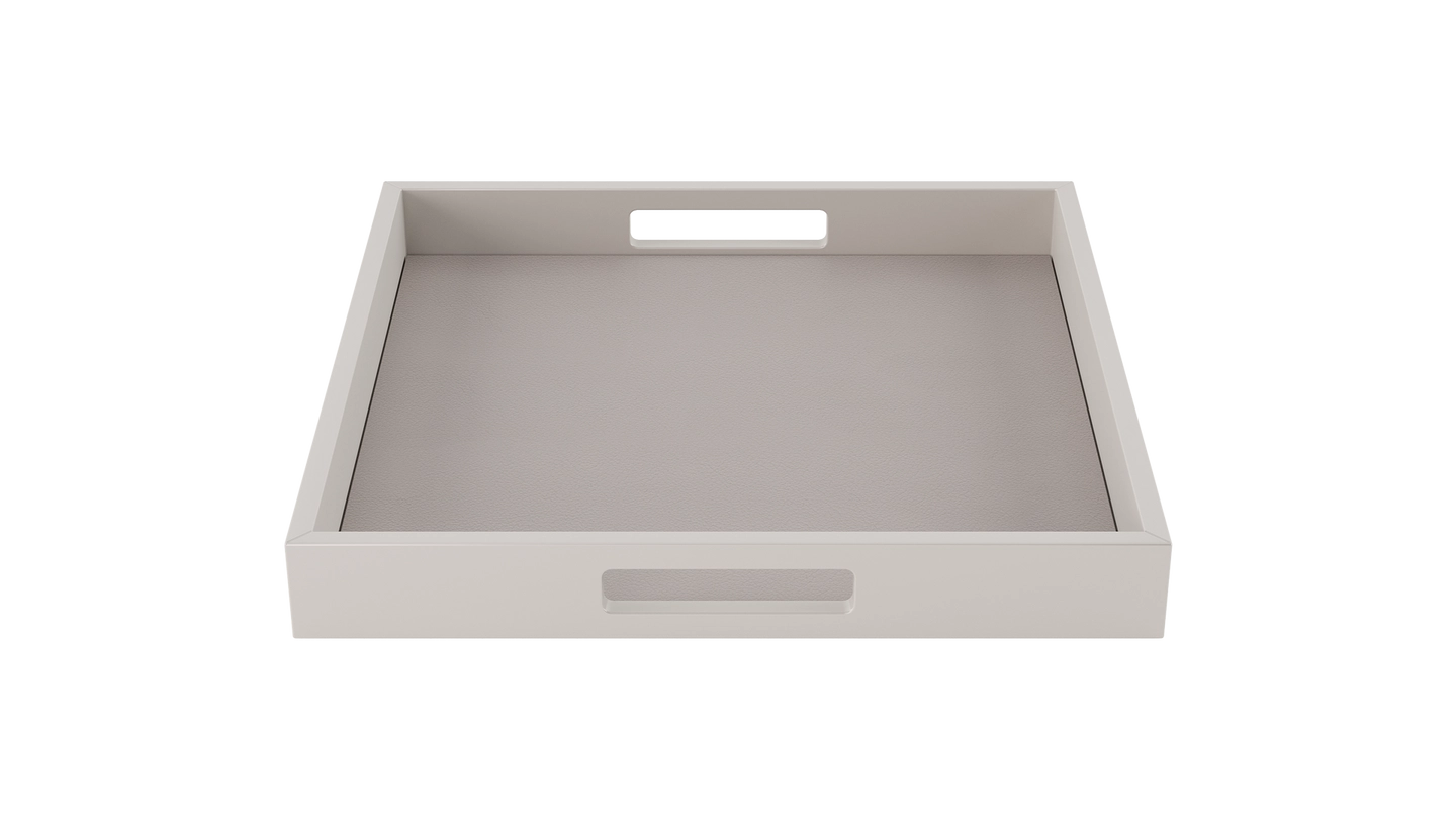 A perfect square, the AVEIRO I Tray is a chic way to arrange ornaments and accessories. Made from glossy lacquered wood, it’s inlaid with soft, tonal leather that’s embroidered with a cross sign.