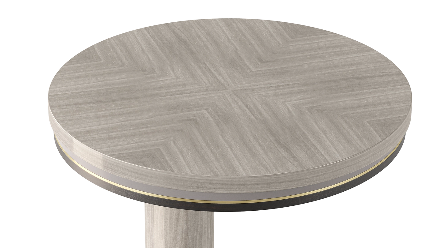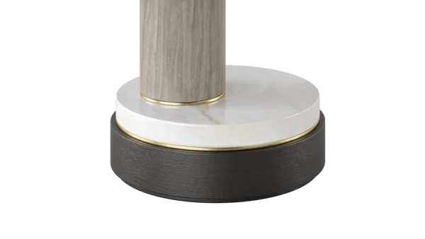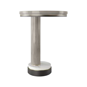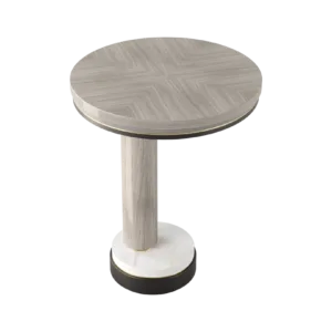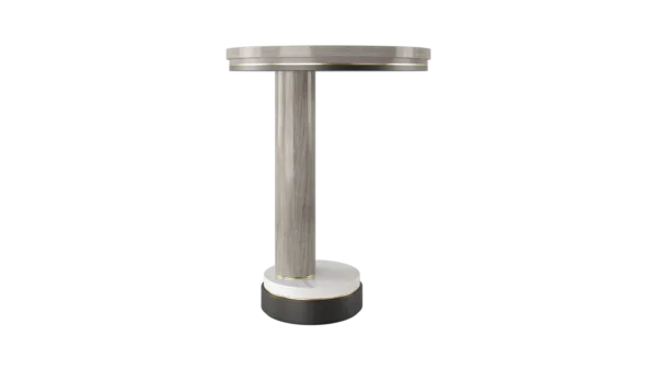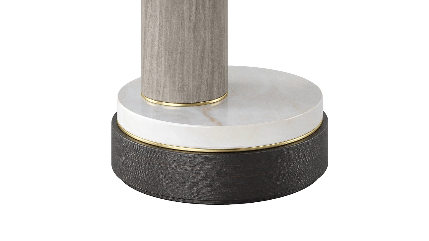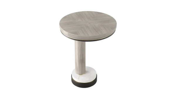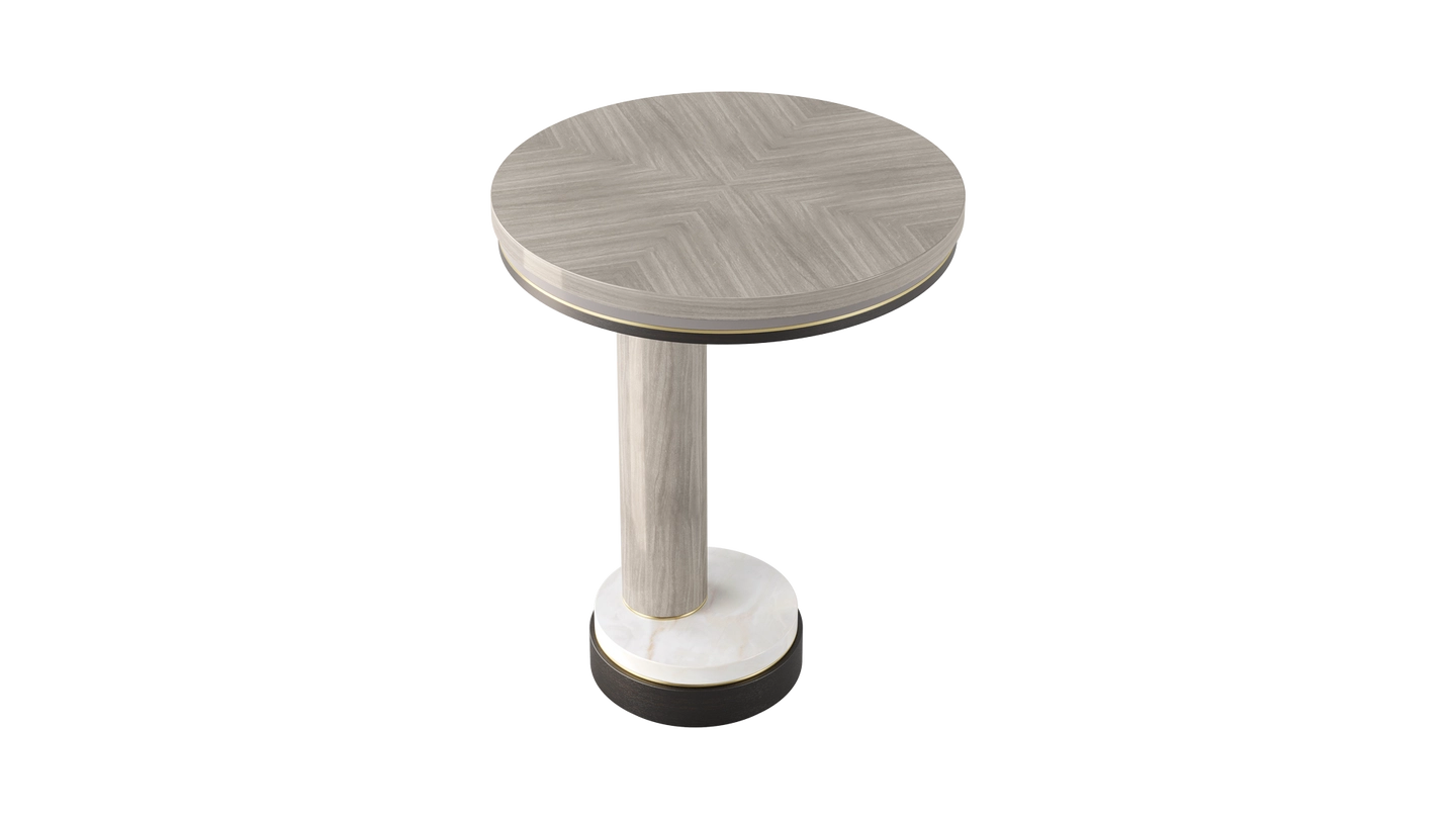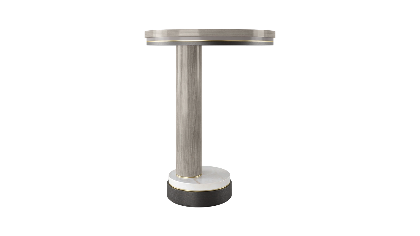 Crafted from different tones of lacquered wood, wood veneer and brushed brass, the distinctive AVILA side table’s stone base grounds the design, allowing the stem to be placed quirkily off centre.