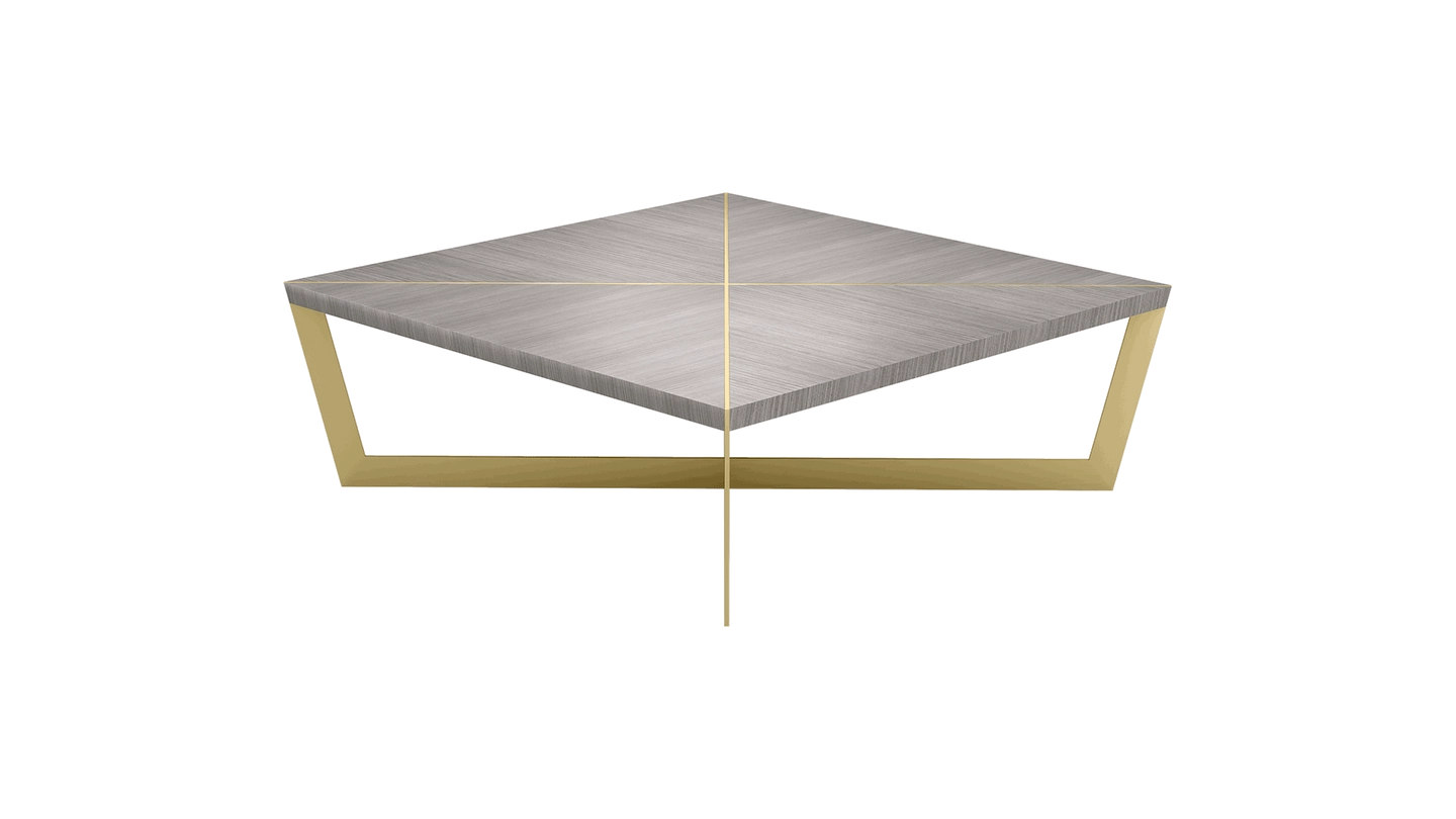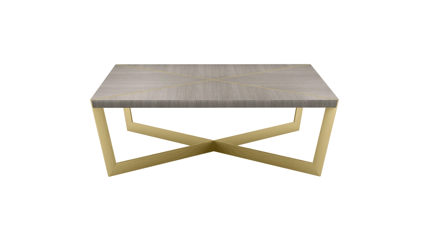 A perfect square, the generous BAROSSA coffee table’s clean-cut surface is crafted from beautifully veined wood veneer and features an X-shape that elegantly echoes the profile of its slimline brushed-brass base.