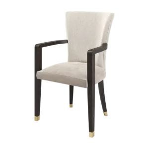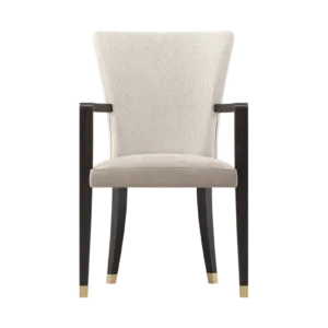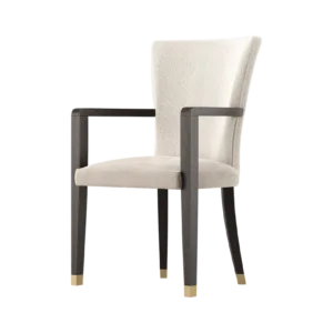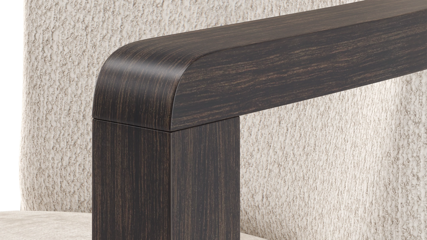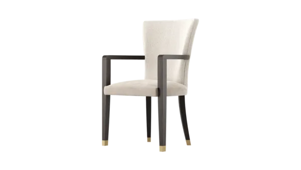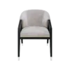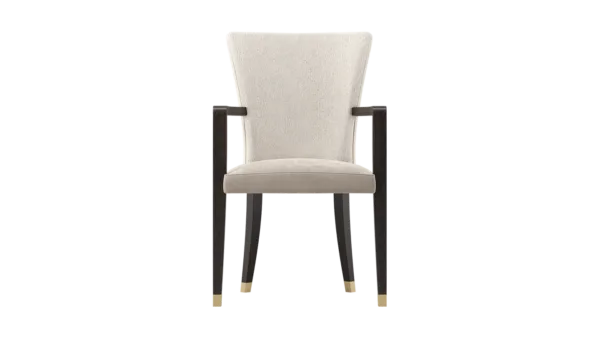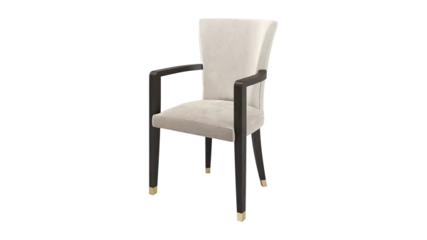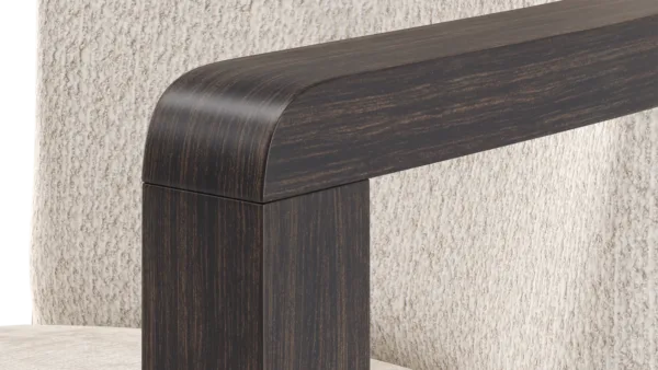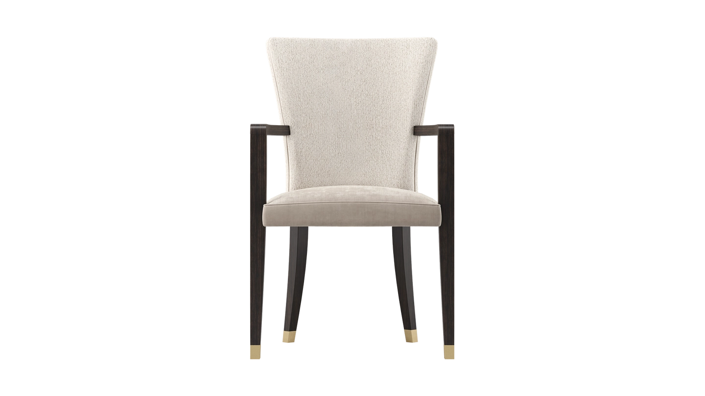 “Pared-back and poised, our high-backed BASTILLE dining armchair wins style points by subtly contrasting a smooth velvet seat with a more textured fabric back that’s further enhanced with delicate linear detailing across the rear. ”