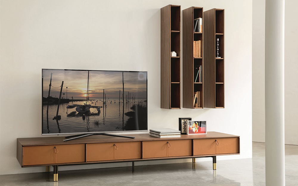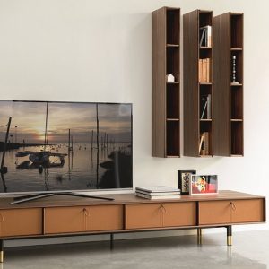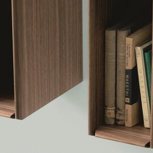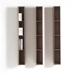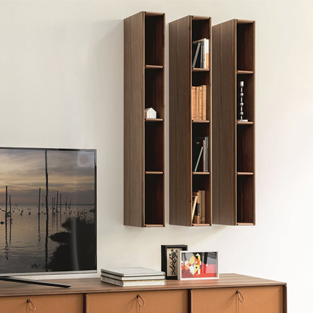 The Bayus Wall Unit features a distinctive solid Canaletto Walnut frame in a choice of finish. The wall unit consists of four open storage compartments.