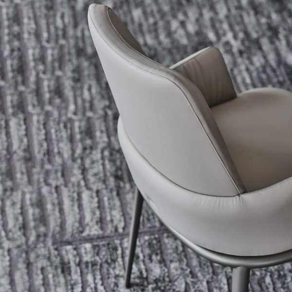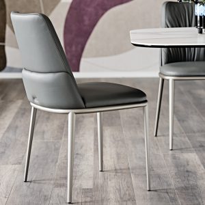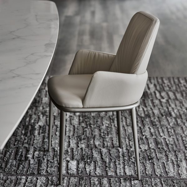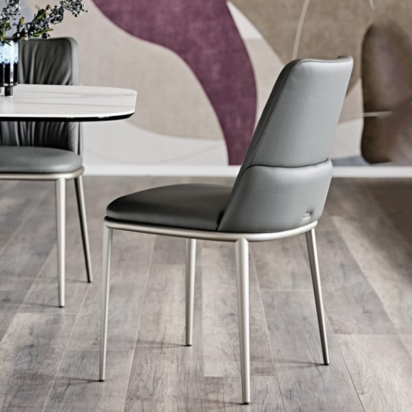 The Belinda Chair from Cattelan Italia features a ruched detail to the front of the backrest and an overlap section to the back, on a fully upholstered seat supported by an elegant rounded lacquered steel frame and legs.