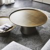 The table top features a thin lip round the edge and comes in a Mirrored Bronze Glass finish, which is complemented with a lacquered steel frame with sleigh-style legs.