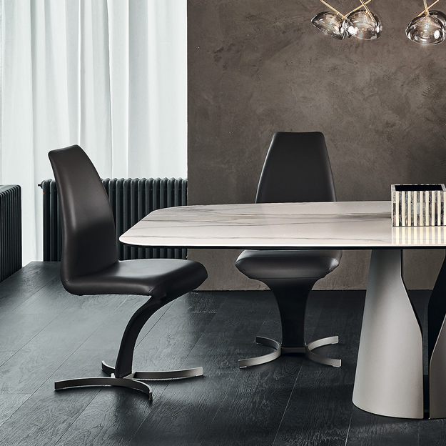 The Betty Chair by Cattelan Italia has a unique sculptural design. The statement chair features a steel base that can be selected in a range of colourways, and an upholstered seat and backrest in a choice of real or synthetic leather finishes for a luxurious touch.