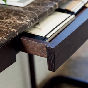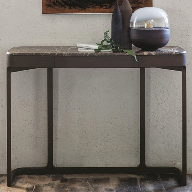 The Blush is an elegant solid Ash wood console table featuring a practical storage drawer and contrasting top in a marble finish. Available in a range of Ash wood finishes.