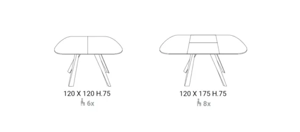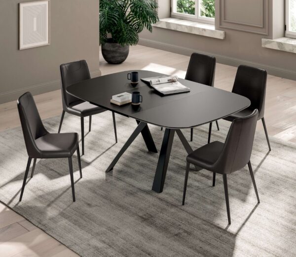 A table with a strong personality and soft lines that hide exceptional performance. Its natural combination is with chairs characterize by soft and enveloping lines. The bases embellish the precious tops in ceramic or anti-fingerprint glass. Equipped with an internal extension to accommodate up to 10 people.