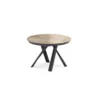 Dining table with new synchronised table top elongation mechanism. The lifting of the extension is facilitated by a rail integrated in the casing. Base in painted metal, top available in different finishes. Height-adjustable feet.