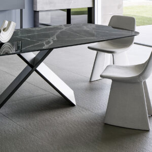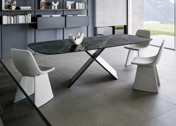 The Bonaldo Agea dining chair by Marconato & Zappa from Bonaldo in Italy has strikingly unusual legs which are almost rooted to the ground, as if to leave their mark in the space where they are placed.
