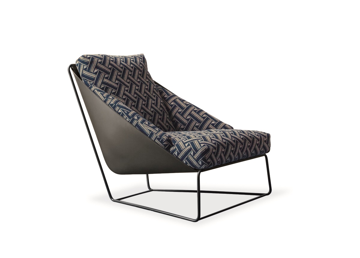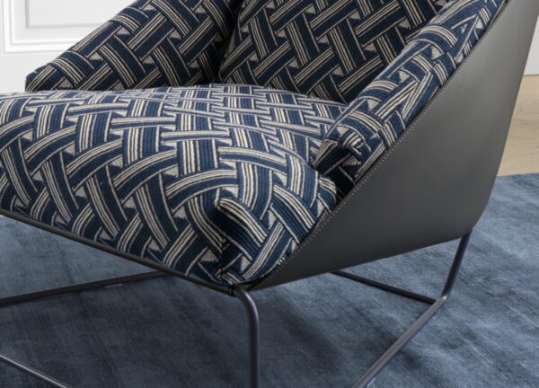 The seat exterior is in covered in bonded leather or beautiful emery leather and the interior seat, back and armrest cushions are upholstered in either fabric or leather. The smart tubular frame is painted metal and can be selected in the several finishes including white, red, chrome or black nickel.