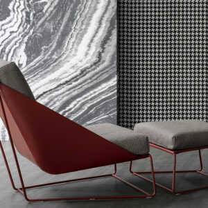 The seat exterior is in covered in bonded leather or beautiful emery leather whilst interior cushions are upholstered in either fabric or leather. The smart tubular frame is painted metal and can be selected in several finishes including white, red. chrome or black nickel.