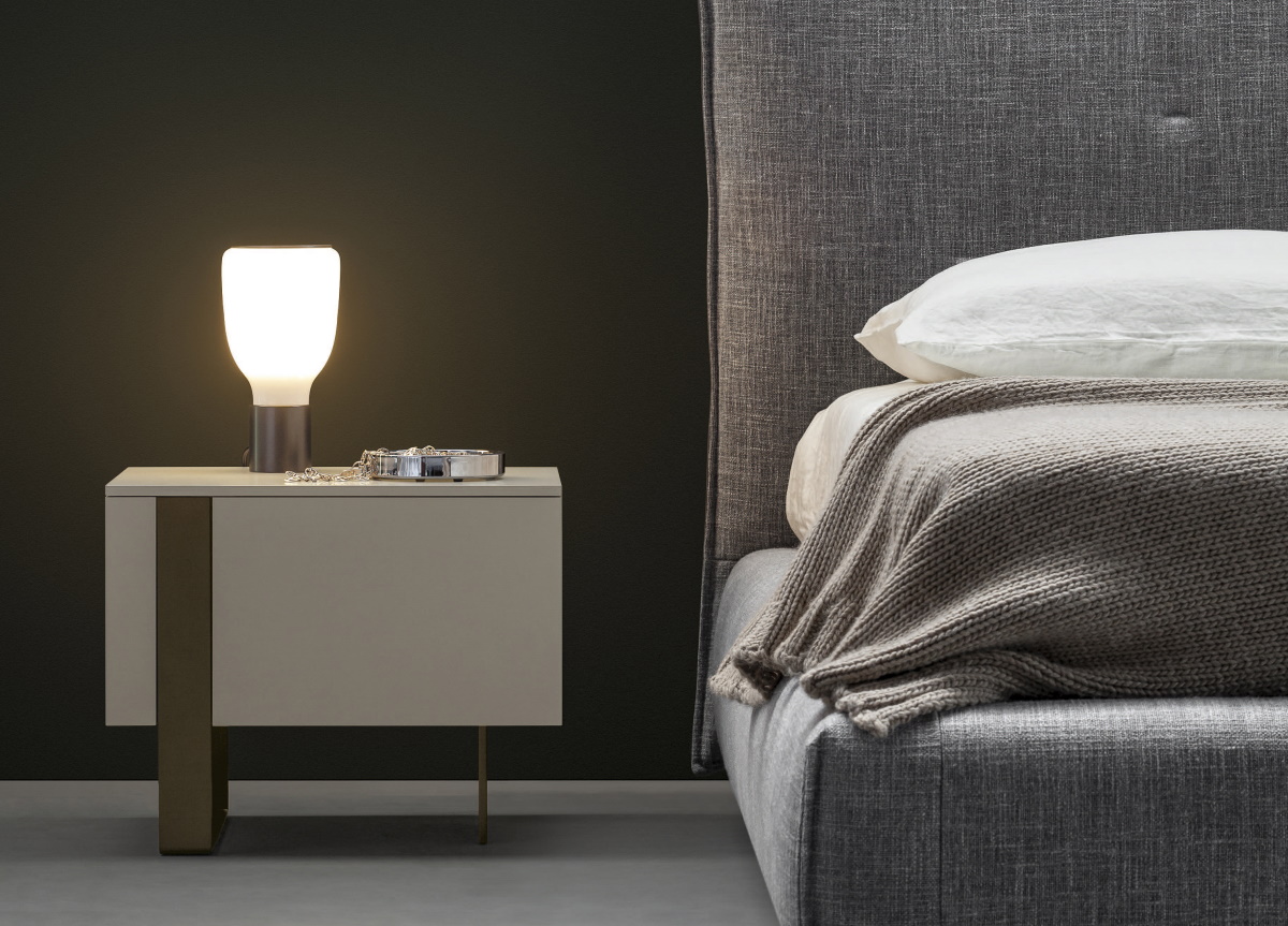 The Antibes bedside cabinet by the Elle Lab for luxury Italian brand Bonaldo has a linear design with asymmetrical features that truly stand out.