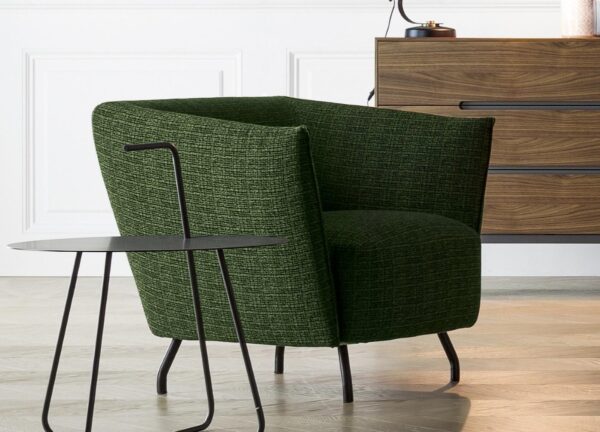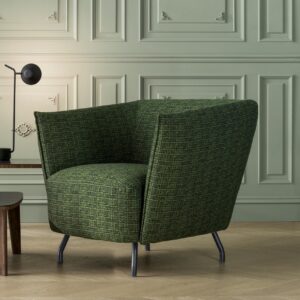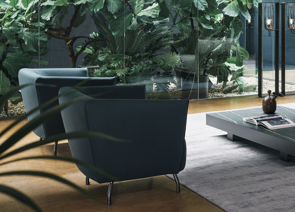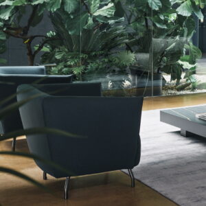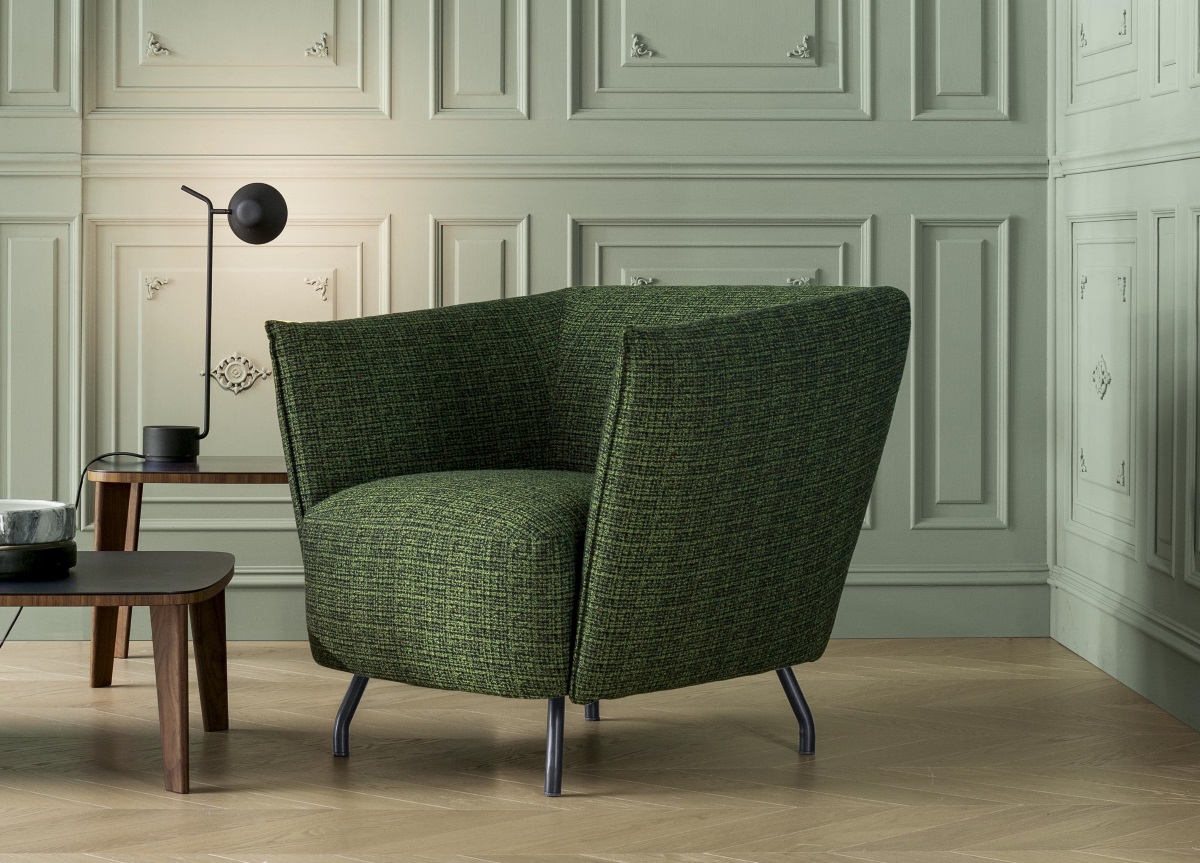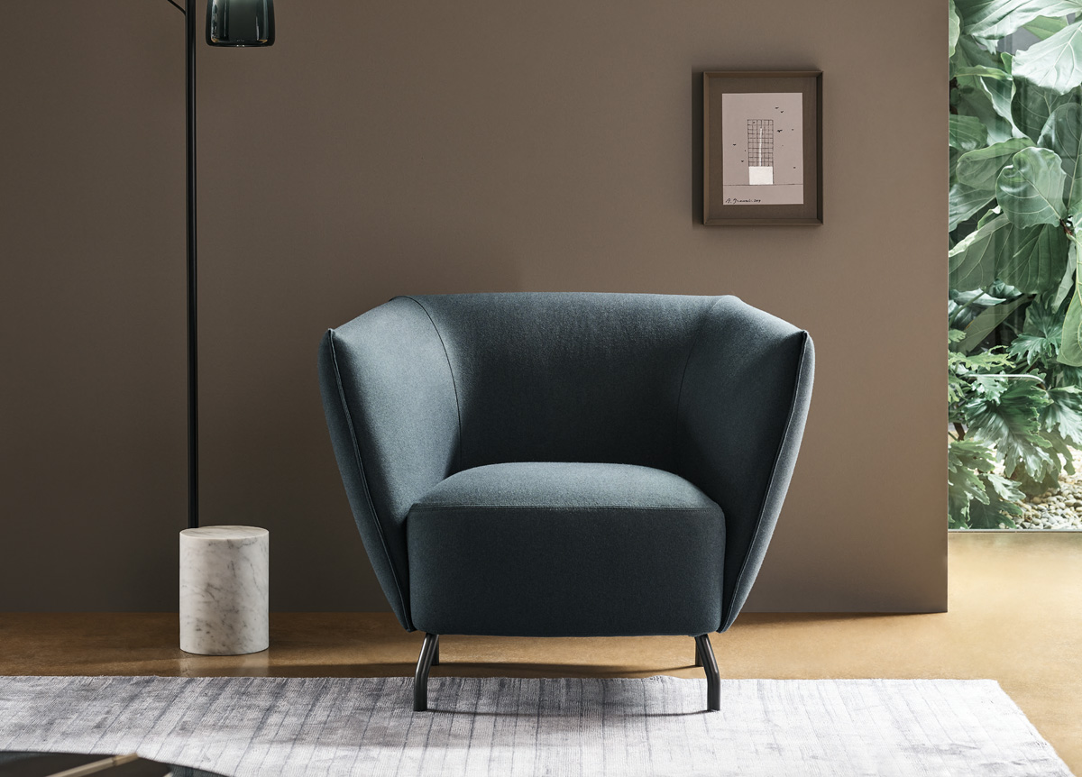 The Arno armchair by Mauro Lipparini for Bonaldo in Italy has an elegant style with a solid square shape and painted metal feet.