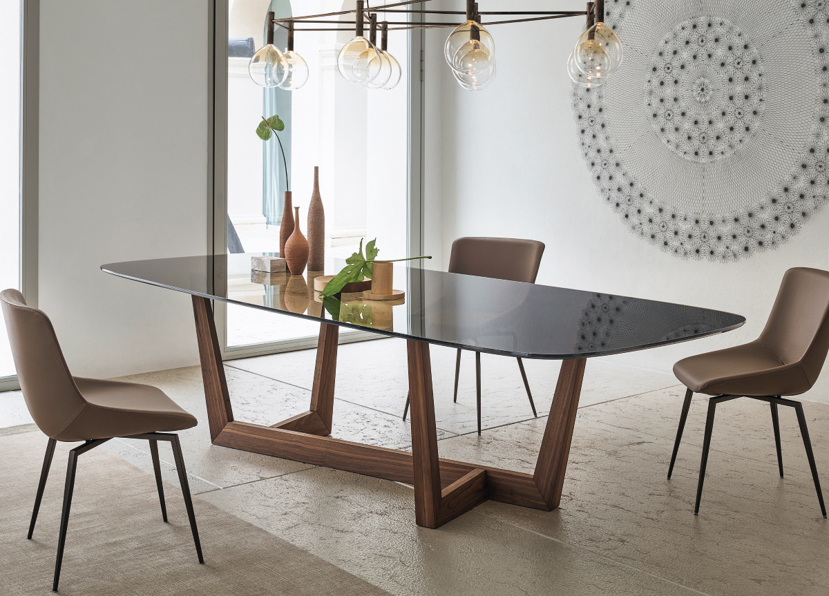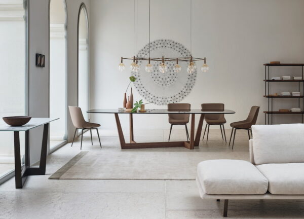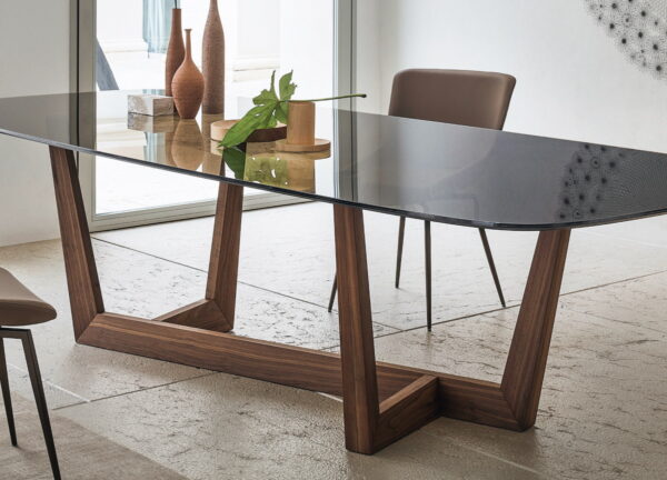 The Art Wood Dining Table is an addition to Gino Carollo’s Art range of tables and consoles which features a solid wood base, rather than a metal base like the rest of the collection. Made in Italy by Bonaldo.