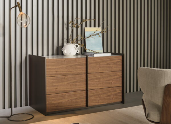 The Bonaldo Aureo chest of drawers by Matteo Nunzia for Bonaldo combines contemporary design with traditional charm in a harmonious and rational way.