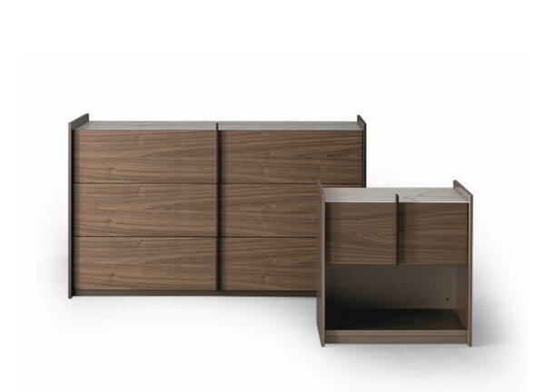 Made in Italy the Aureo collection which also includes a bedside table is inspired by the mathematical/geometric concept of the Golden Ratio: a system on which the proportion of all spaces dedicated to the human life is based, with the intent of creating a balanced, yet functional standard.