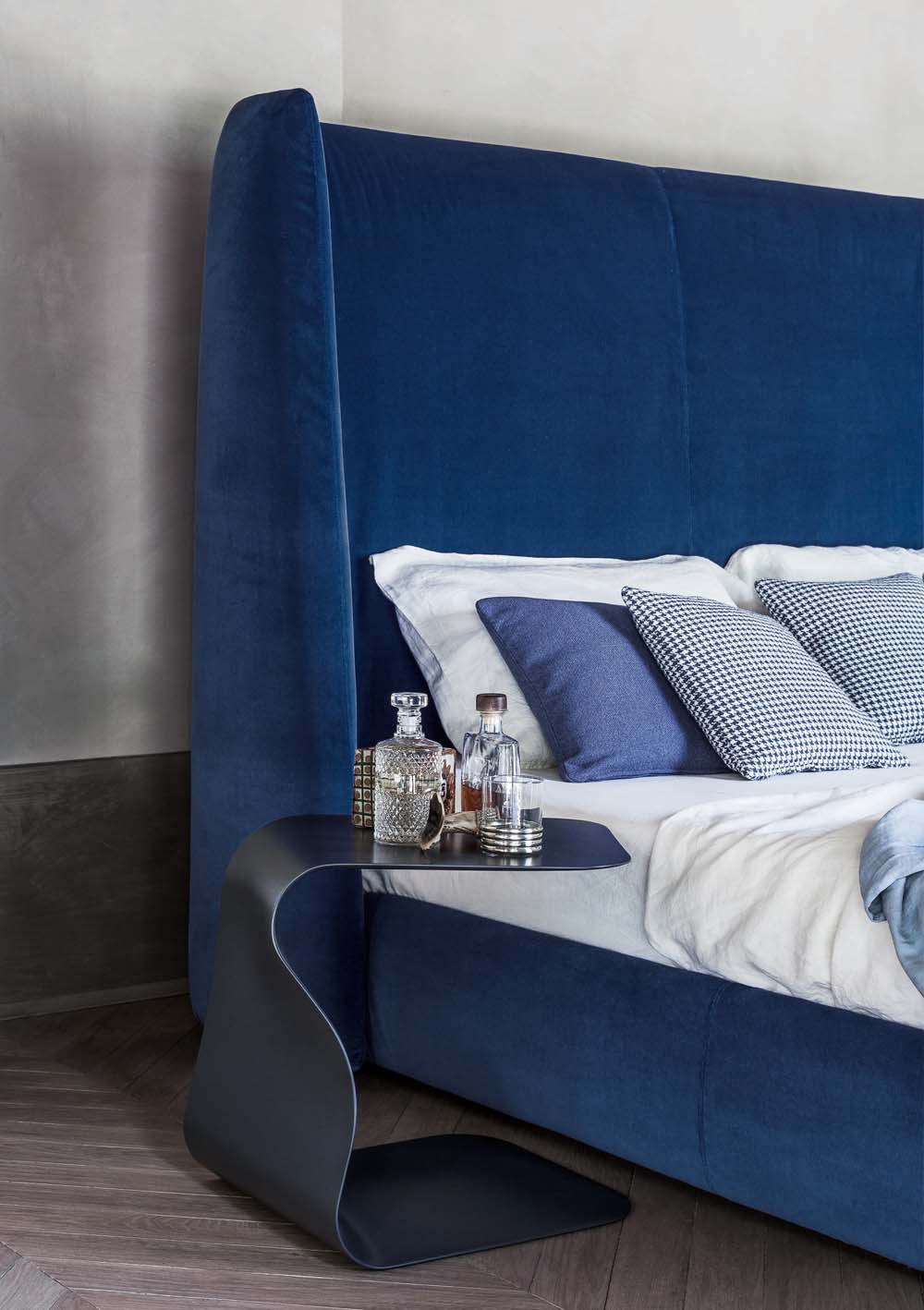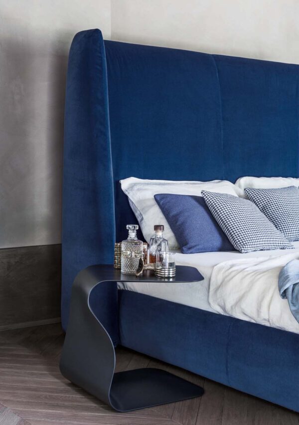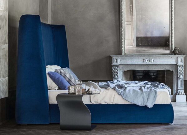 The Bonaldo Basket Hi king size bed by by Mauro Lipparini Bonaldo has a super high (Alto) 1.6 metre (5 ft 2) wrap around head board & gently curved upholstered base.