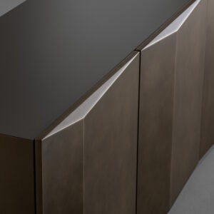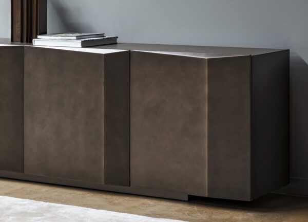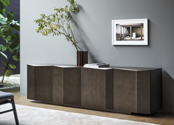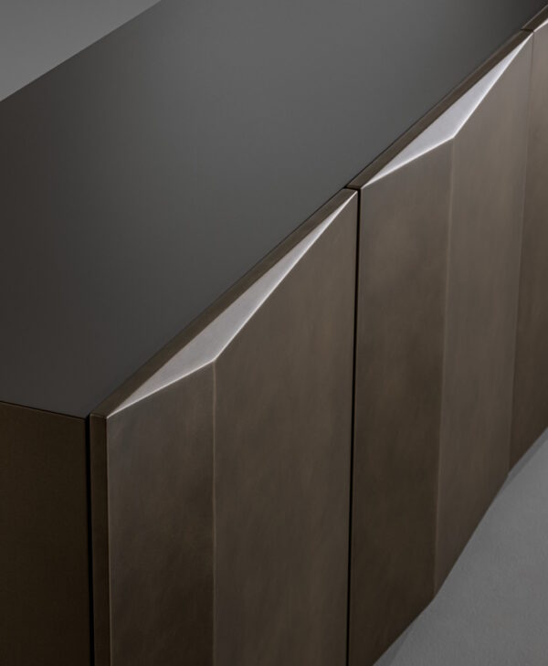 The Bonaldo Bernois sideboard by Roberto Paoli has a striking design with doors that are a sequence of vertical “folds” so that their appearance changes according to the light and the observer’s point of view.