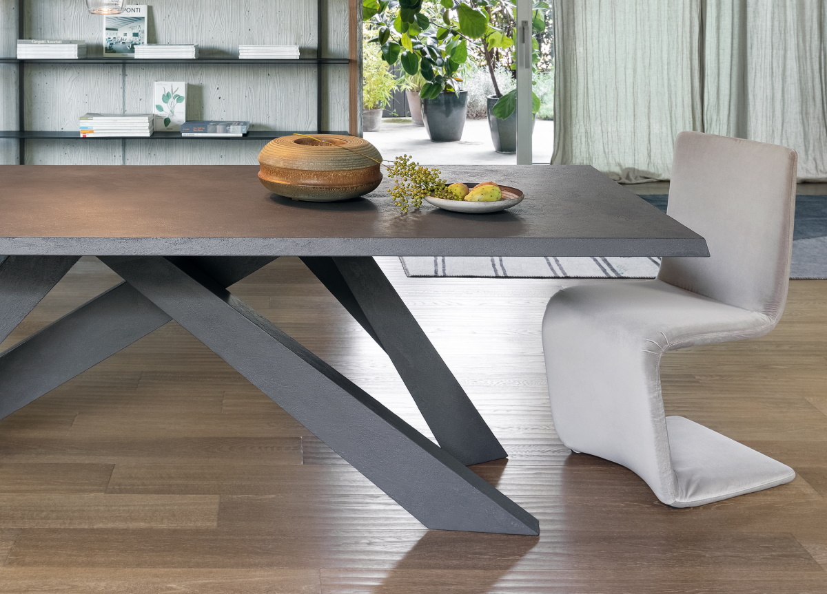 his version of the iconic Bonaldo Big Table by Alain Gilles (winner of a Red Dot award) has a table top in a clay finish with a hand spatula effect in six different colours. Choose from Glacier, Graphite, Neige, Perle, Terracotta or Terre.