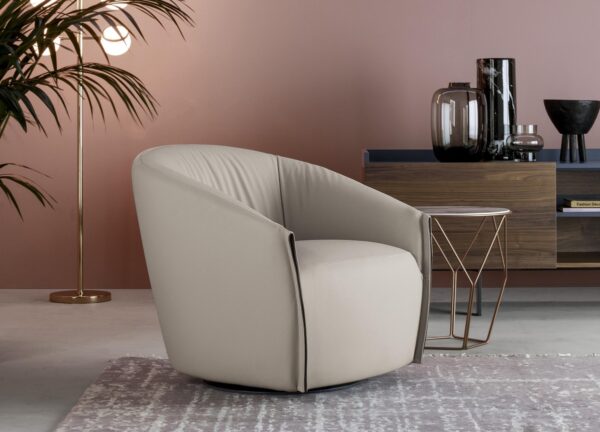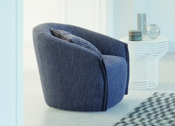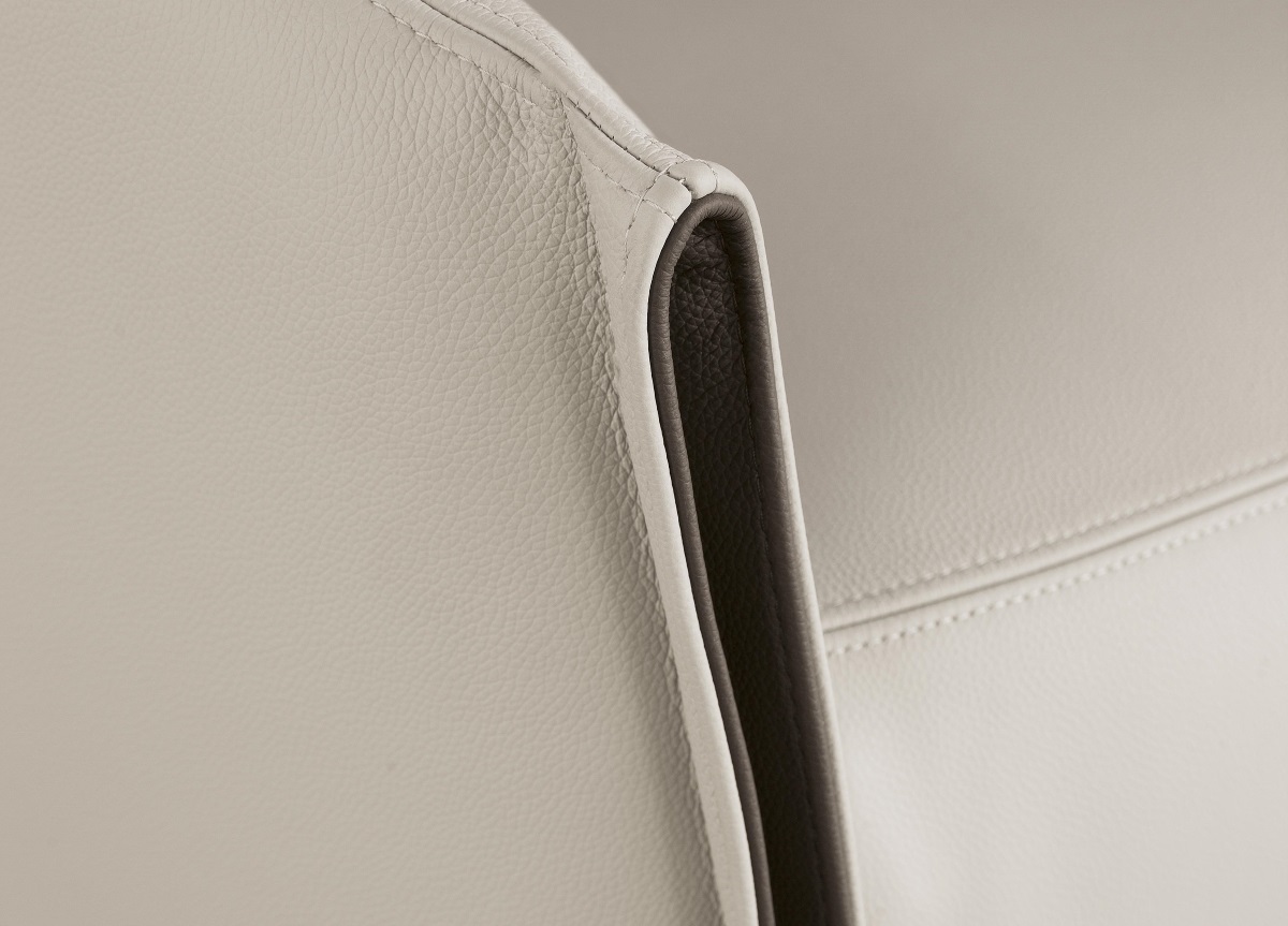 The Bodo armchair by Mauro Lipparini for Bonaldo in Italy has a choice of feet, or a smart swivel base and features a contrasting Capri leather insert on the front seams.
