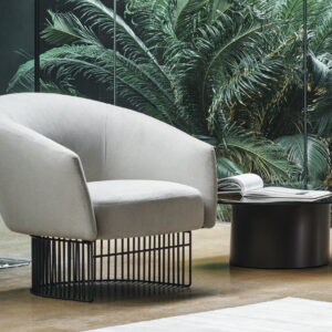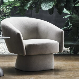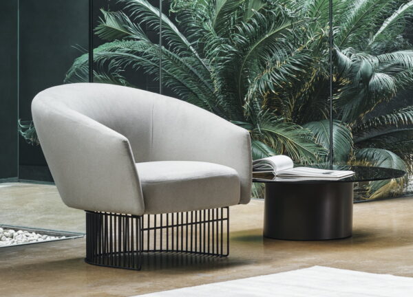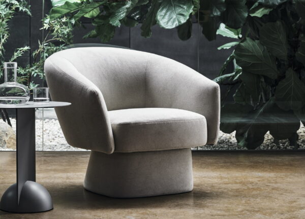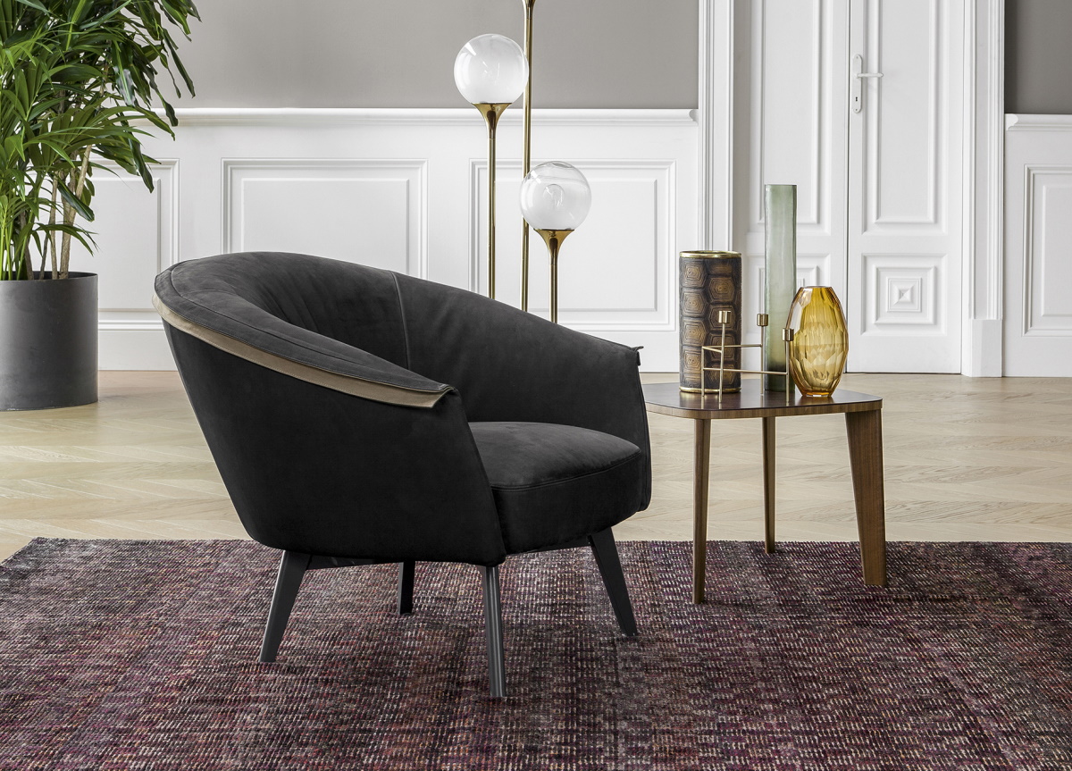 The Bonaldo Bruno armchair by Mauro Lipparini has a deep comfortable seat with a curved backrest and three different options for the base.