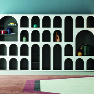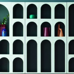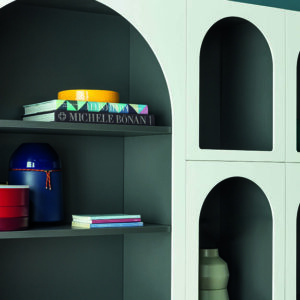 There are also options to have shelves within the archways, you can select them from the menus below. The unit is made from solid wood, which is lacquered white on the front and anthracite grey for the interior and shelves.
