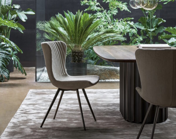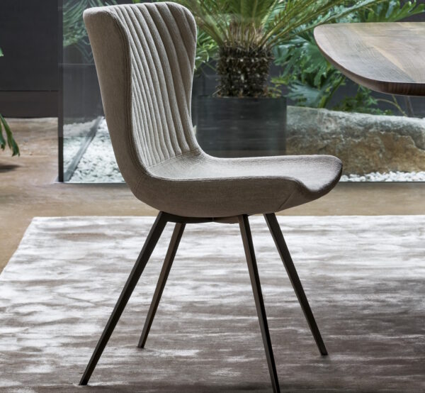 Made in Italy and perfect for the dining area, the Colibrì chair has a generous wide seat and a gently curved backrest which welcomes and envelopes it’s guests. The seat padding further emphasises the sense of softness and comfort already guaranteed by the ridged upholstery which adds depth and volume.