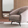 The generous wide seat and large curved backrest welcomes and envelops it’s guests. The special soft padding further emphasises the sense of softness and comfort already guaranteed by the curved frame.