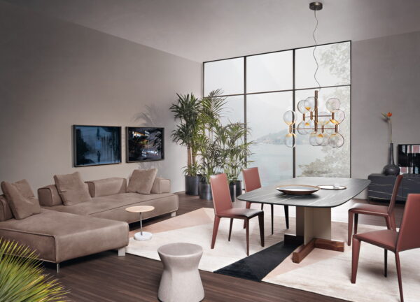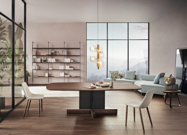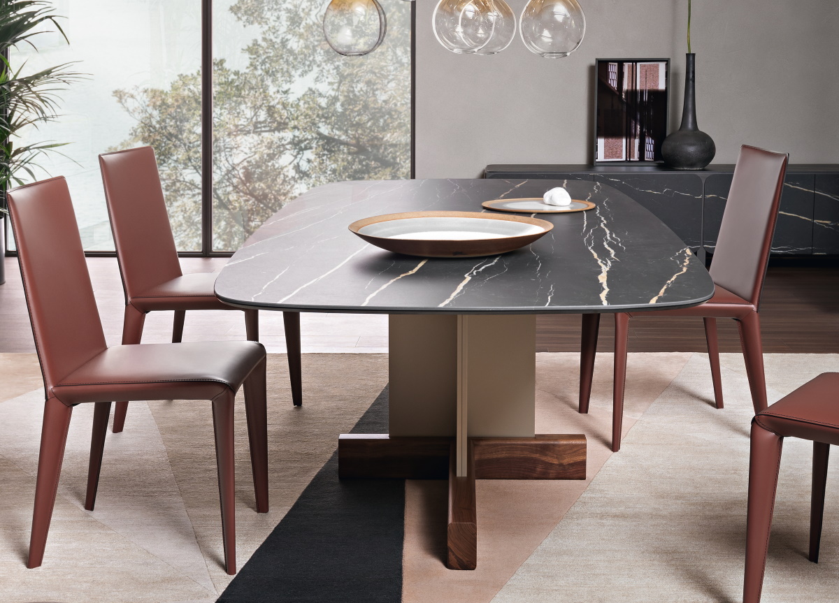 The Cross dining table is a combination of three essential elements: a top, metal structure and base. A stylish, refined design with a strong visual impact.