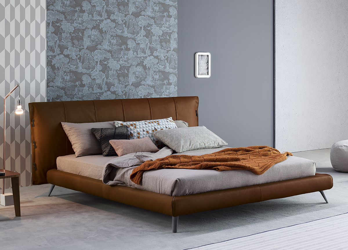 Shown here in leather. However, the Cuff bed can be upholstered in both fabric and leather. Bonaldo have a large collection of each and as there are so many options it is impossible to show them all here.