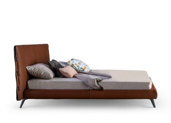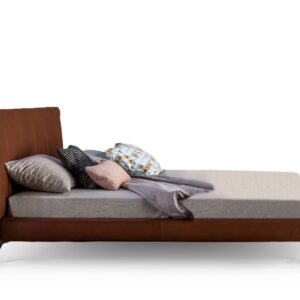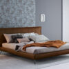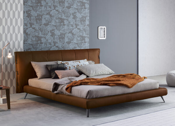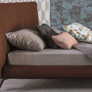 The Bonaldo Cuff king size bed by Mauro Lipparini has a strongly tailored look. It has frog fastenings which adorn the ‘cuffs’ and it has vertical pleating on the headboard. Another unique feature of this bed are the visible leather inserts which detail the bed frame and headboard .