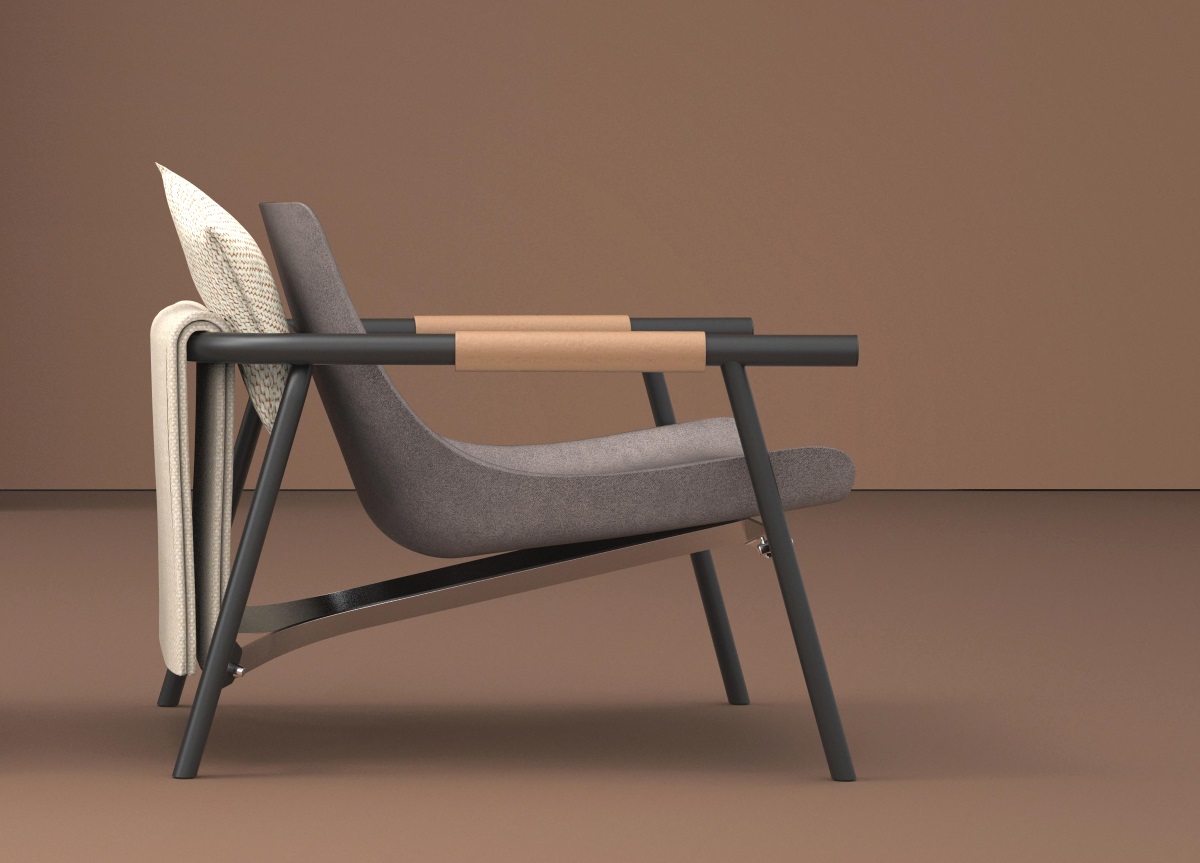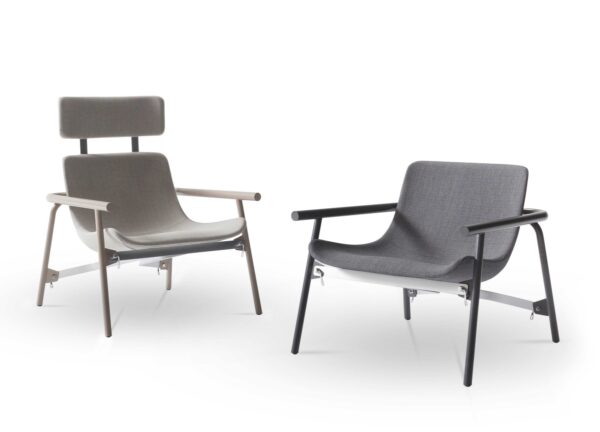 Strong metal legs can be matt painted in a variety of colours or metal finishes. An Eddy Up version of this chair with a comfortable headrest is also available.
