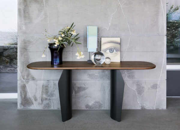 The Bonaldo Flame console table by Gino Carollo is elegant and versatile and features harmonious shapes and light, sinuous volumes.