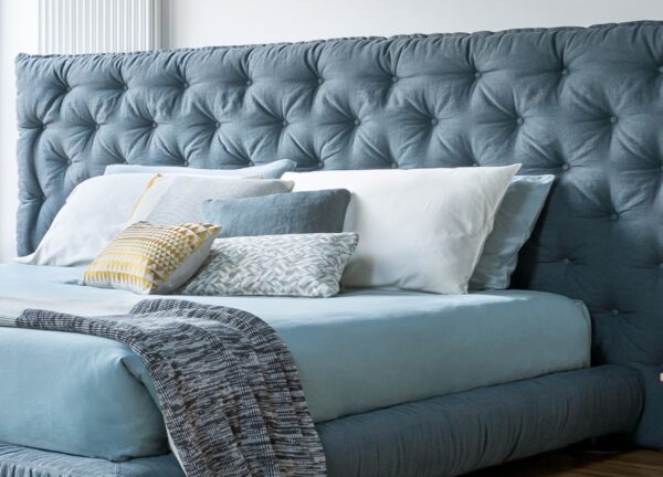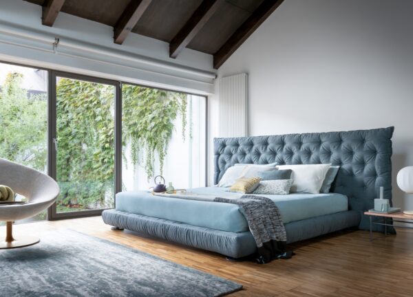 Full Moon is a new addition to Bonaldo’s bedroom furniture range and features an opulent, quilted headboard which stands out for its striking capitonne decoration. The sense of softness and comfort is further enhanced by the equally padded bed frame. An additional distinctive detail are the circular shaped feet which accentuate the sinuous design of the bed and are the source of inspiration from which Full Moon takes its name.