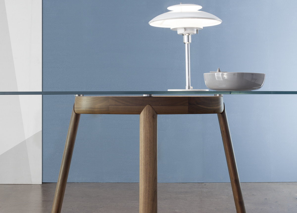 Available in four sizes with a range of different finishes for the table top, choose from transparent glass, smoked or bronzed glass, matt or glossy marble or several beautiful ceramic finishes which look and feel just like marble but are incredibly hard-wearing. Not all finishes are available in all sizes. The stylish solid wood base can be selected in American Walnut or Coal Ash.