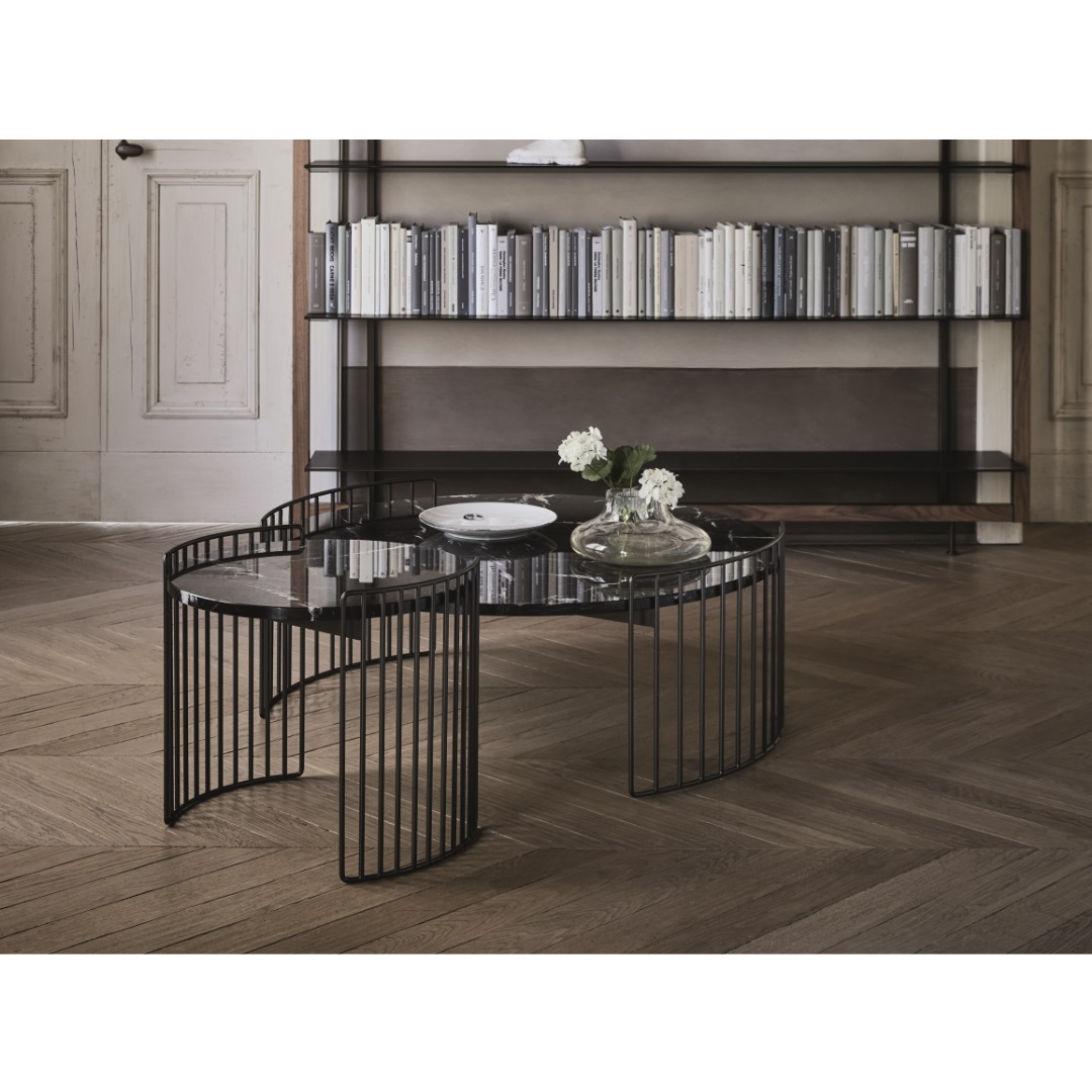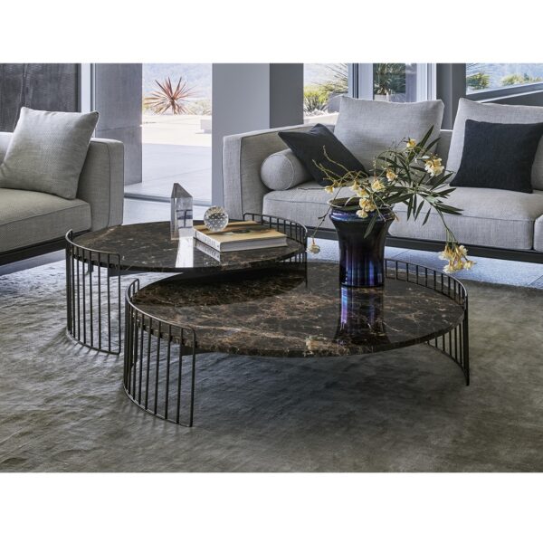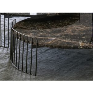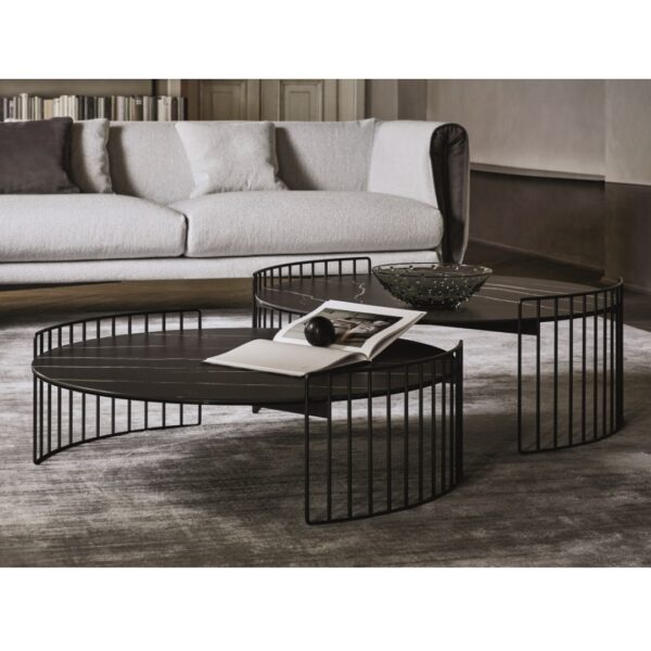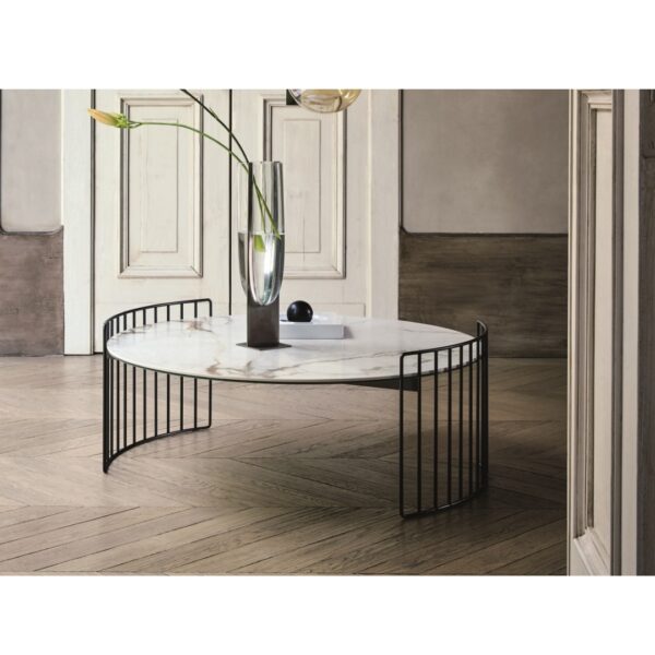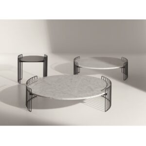 Available in two sizes in two different heights, Harpe combines the functionality of a table top with the beauty of an elegant design.The Harpe collection of tables are inspired by the strings of a harp from which they take their name: the base is visually light and encircles the table top which can be selected in various materials from marble to hard-wearing ceramic,