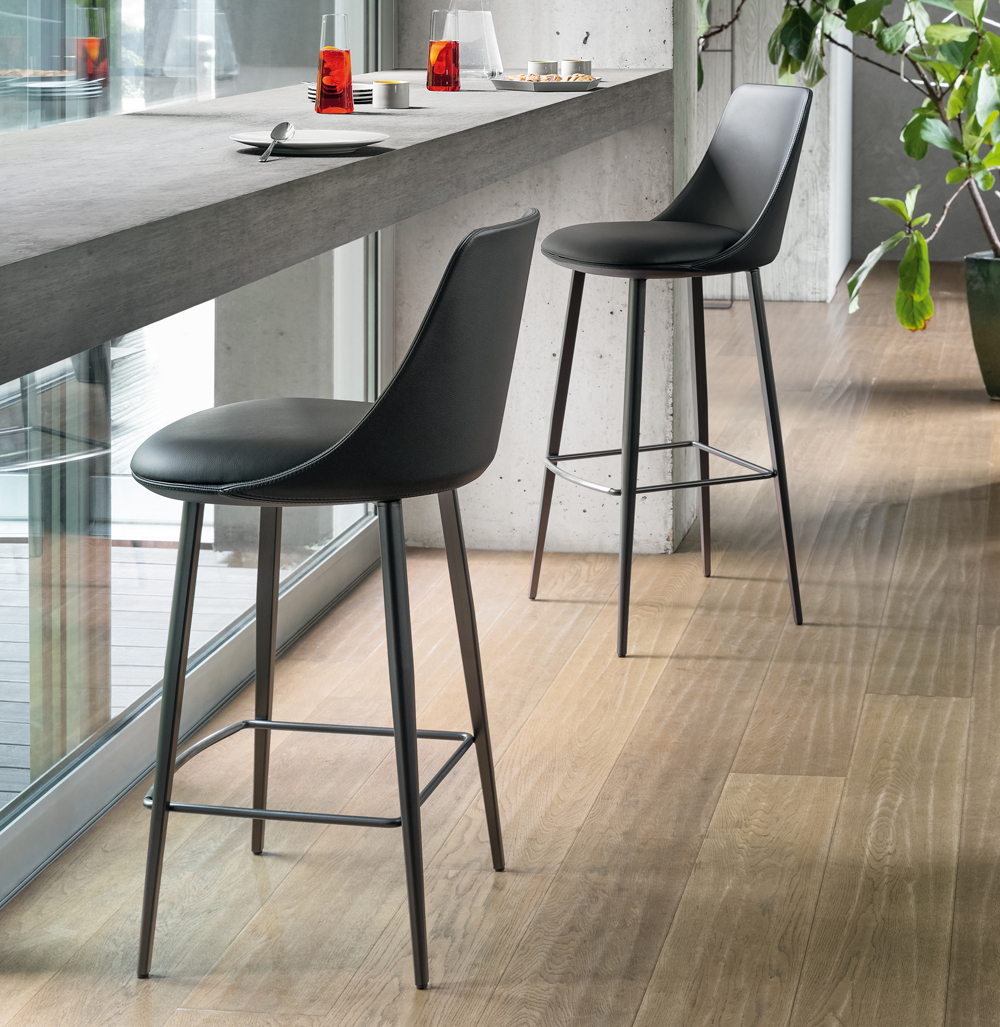 Particular features of Itala Too are its comfortable padded seat and a backrest which becomes slimmer at the top, giving the stool an elegant and understated silhouette. Itala integrates perfectly within the various spaces of the home, combining itself skillfully with contemporary and fun furnishings, as well as with chic environments.