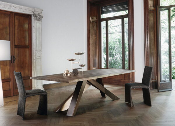 The metal frame and comfortable padding are upholstered in either leather or eco-leather, or in a range of fabrics.