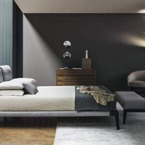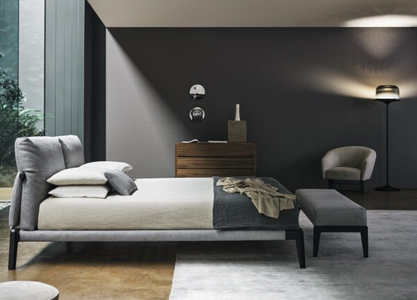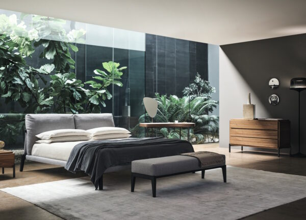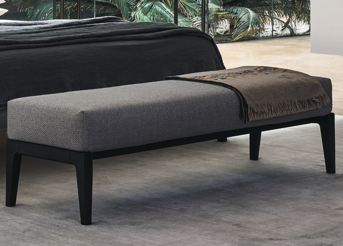 Made in Italy, Kriss has a deep comfortable upholstered seat combined with a lovely solid wood frame in coal ash or Canaletto walnut. This refined combination creates an elegant extra seat in a living room, or a useful entrance hall accessory,