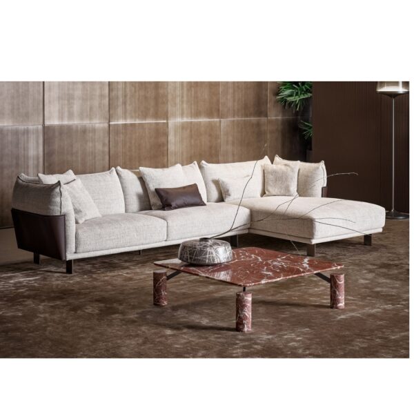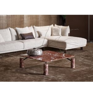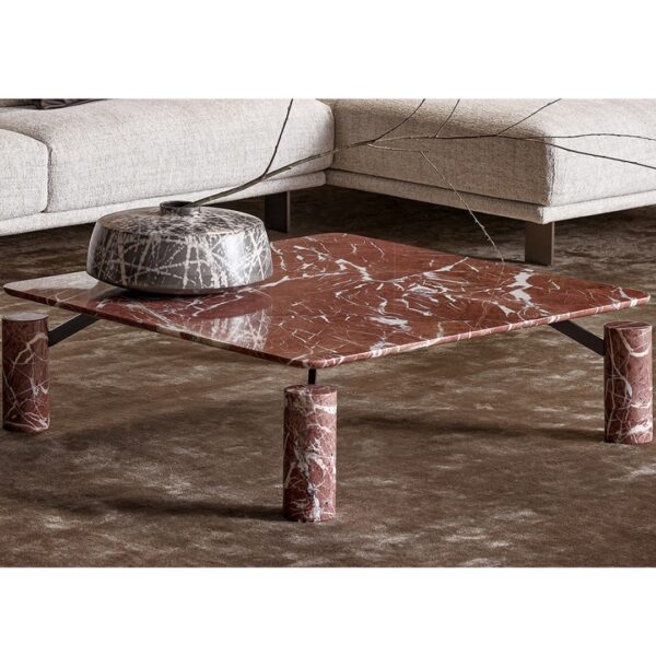 Available in two sizes, the Magic coffee table has a metal frame with a table top and legs made entirely of marble