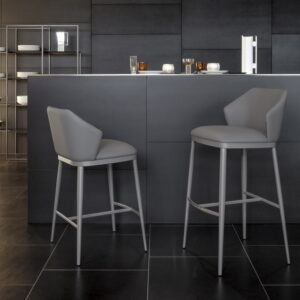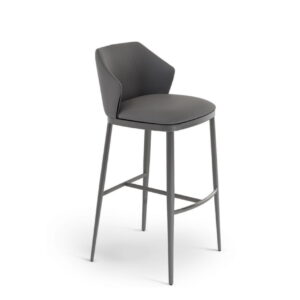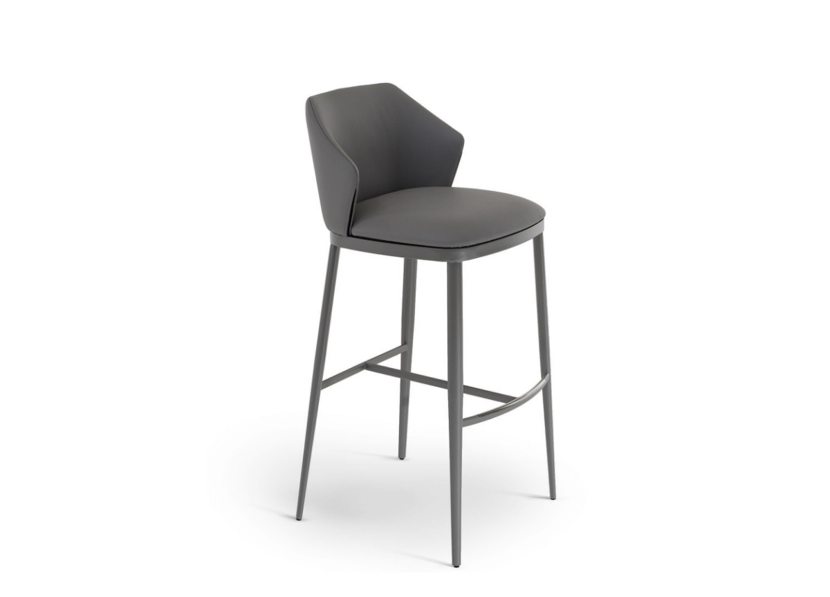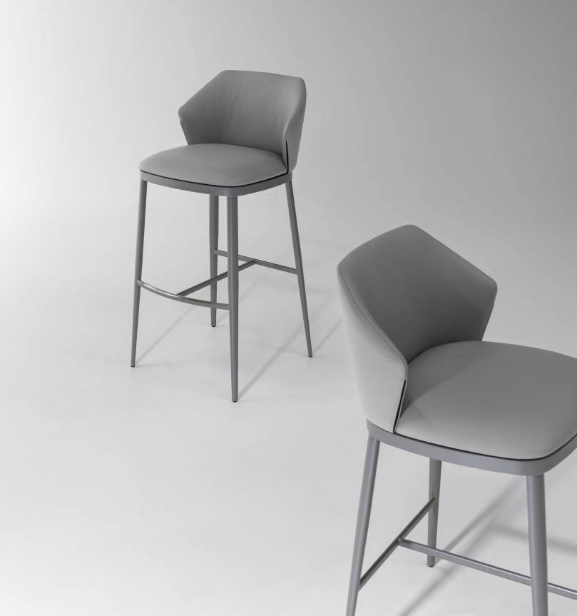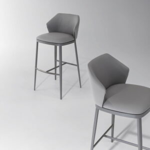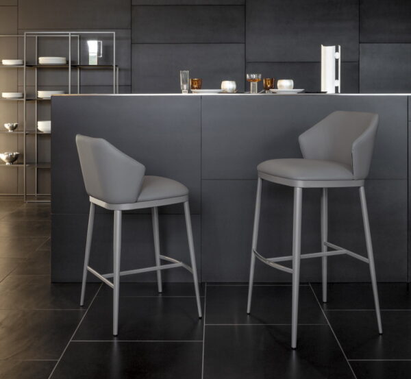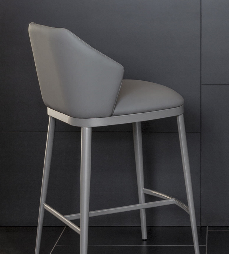 Available in two different seat heights, the Mida Too bar stool features a backrest with a generous, enveloping shape and metal legs in a range of finishes that give the structure a harmonious design.