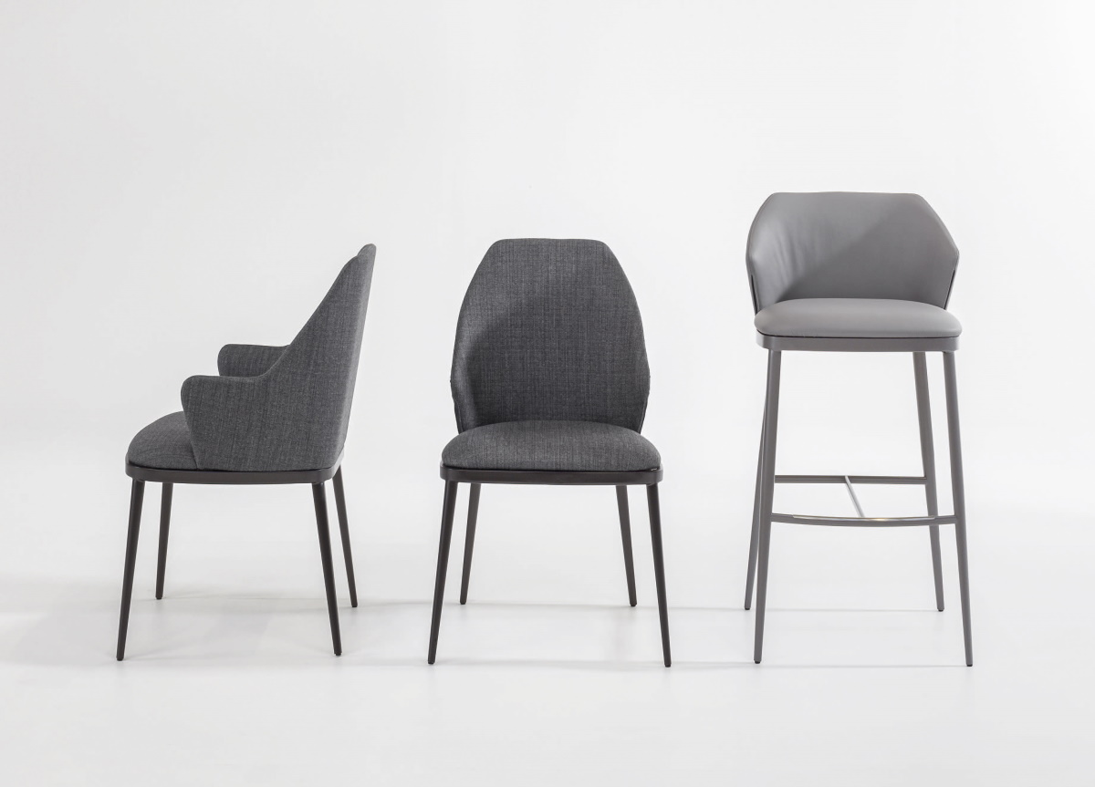 Miss Mida, Mida without armrests and the Mida Too bar stool form a collection of sophisticated, comfortable seats with a strong personality which, partly thanks to the customised finishes and colours, are perfectly suited to both residential and contract settings.