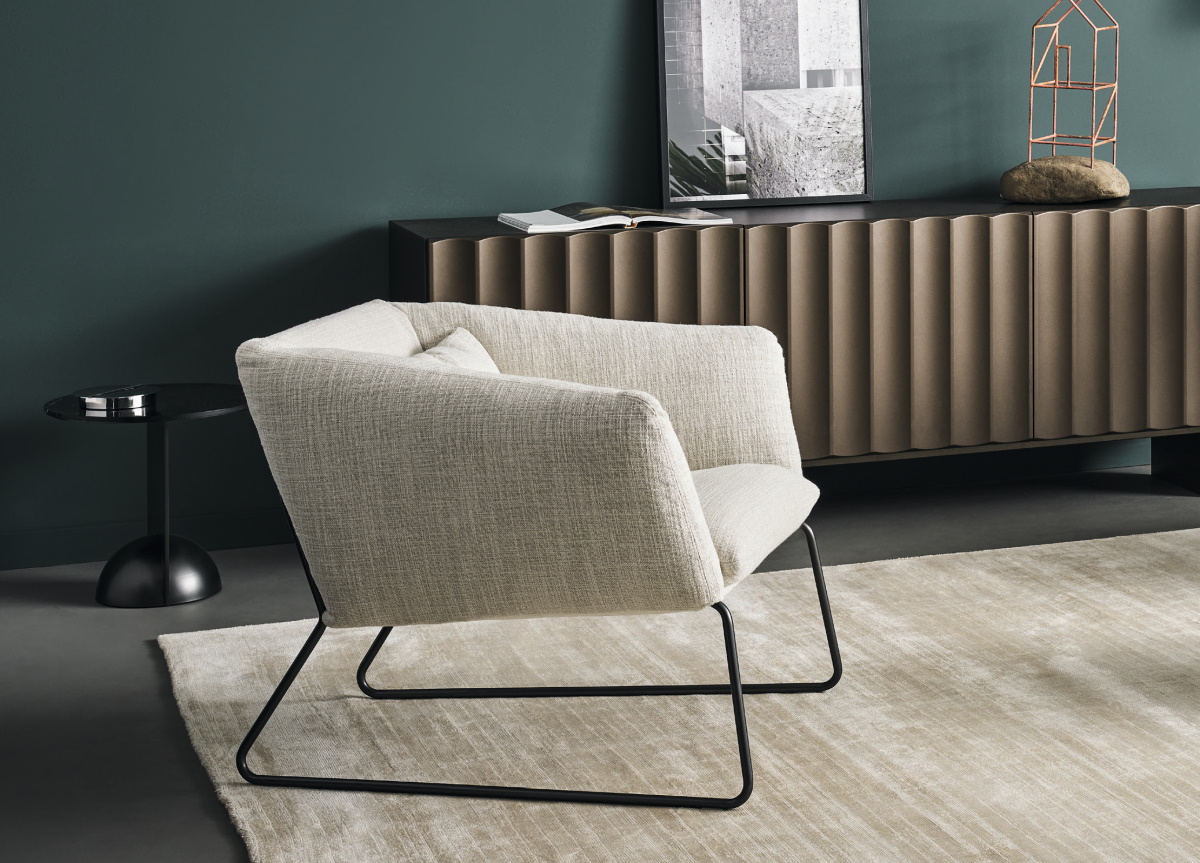 The Nikos armchair by Sergio Bicego for Bonaldo is both cosy and comfortable thanks to the soft down padding and ergonomically designed lower back cushions.