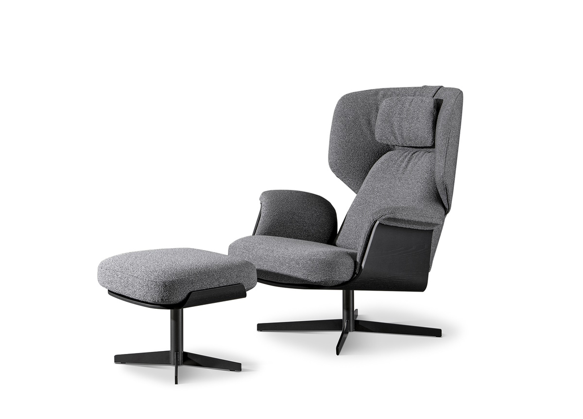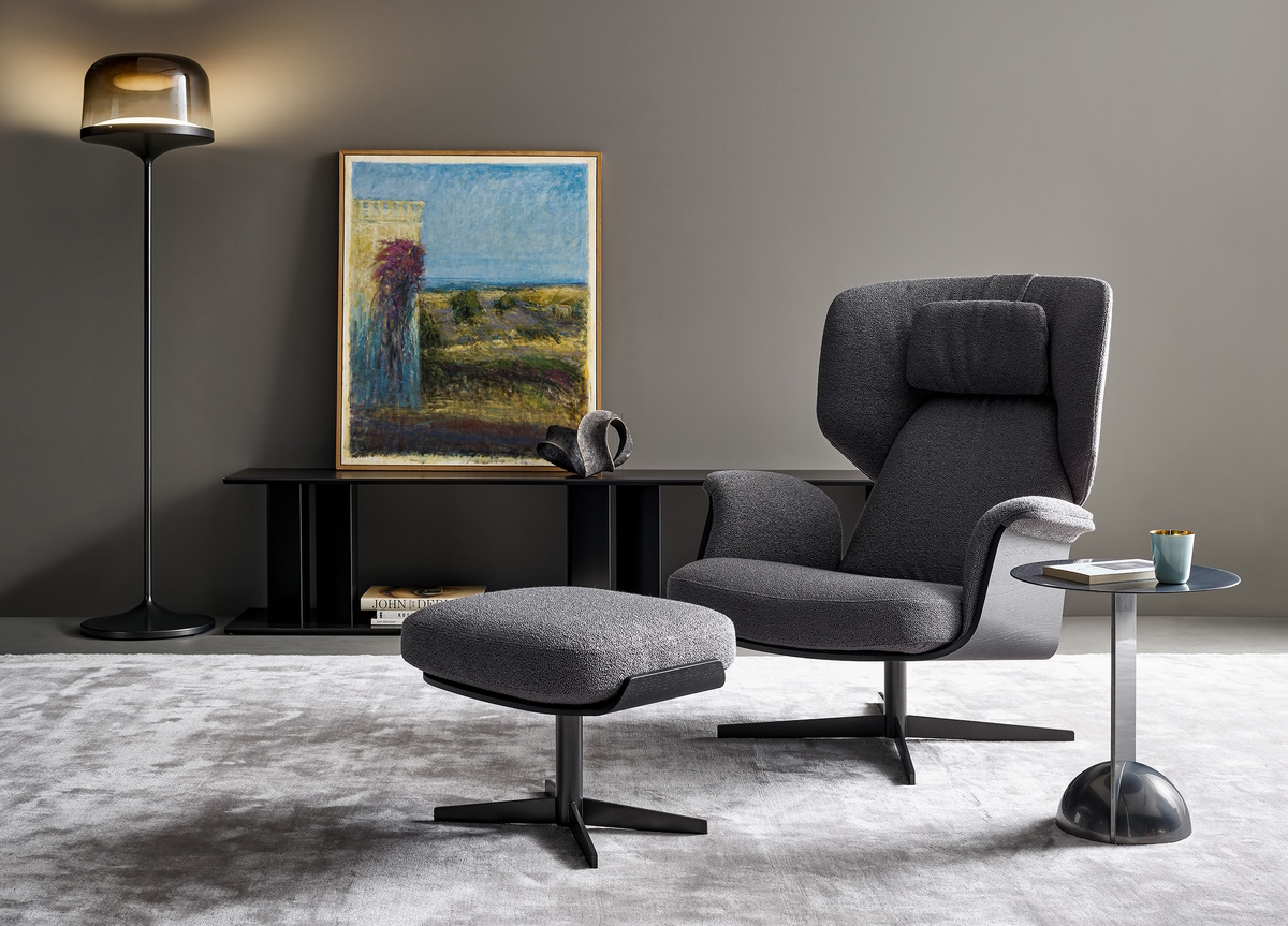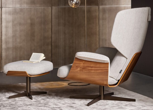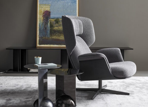 The Bonaldo Olos bergere armchair by Mauro Lipparini has a swivel base and is the ultimate in relaxation with its gently curving contours that offer a lifestyle that is serenely elegant, rigorous and yet comfortable and casual, all at the same time.