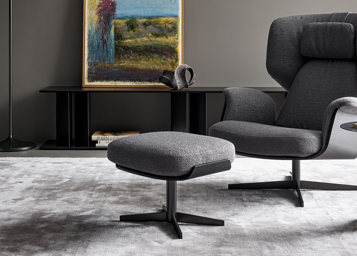 The Bonaldo Olos footrest by Mauro Lipparini perfectly matches the two Olos armchairs providing the ultimate in relaxation.