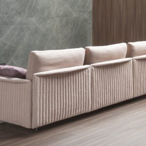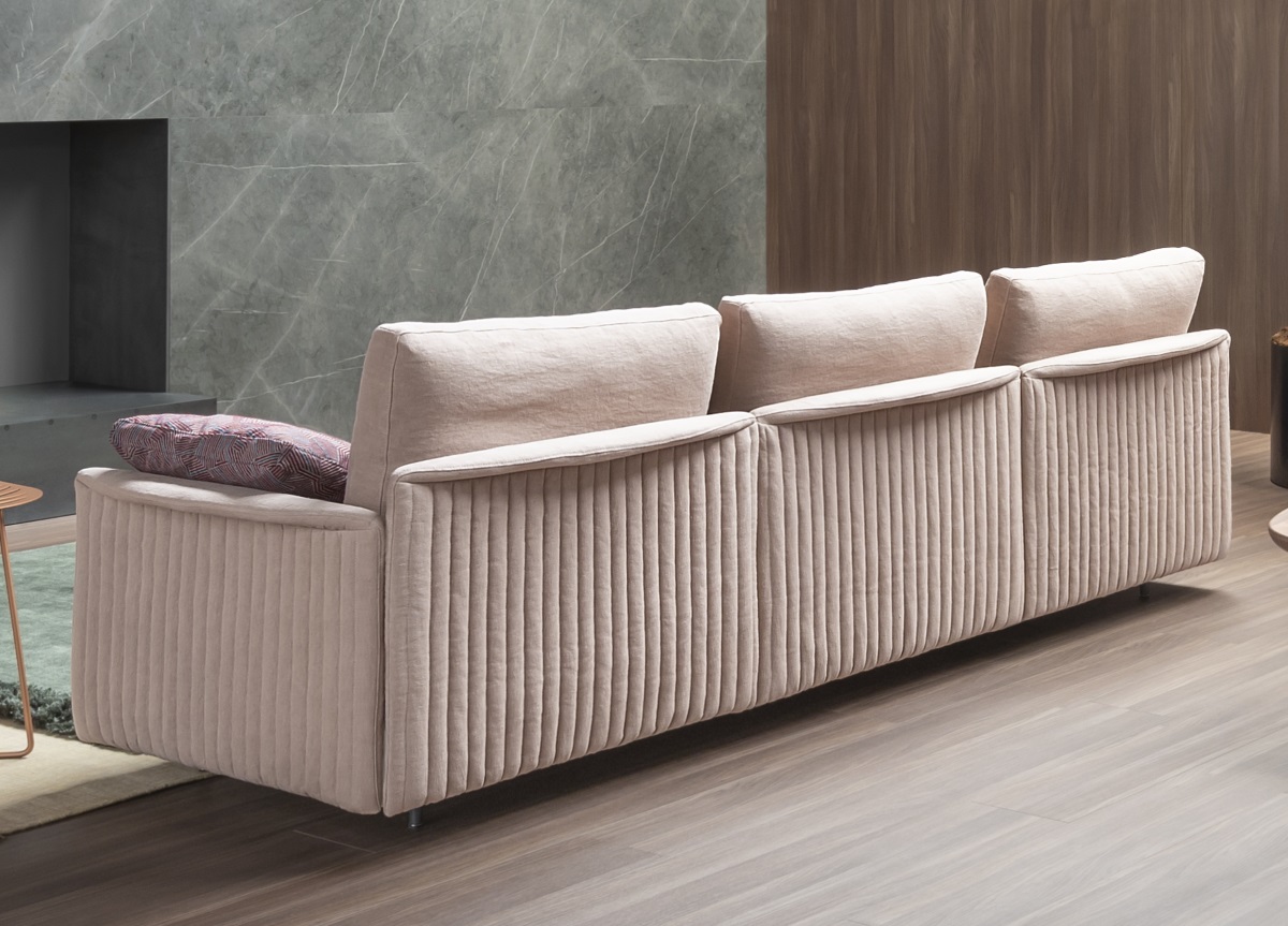 The Only You sofa has deep comfortable seats and back cushions. To add contrast the backrest has an intricate striped pattern created by adding vertical decorative quilting. Another exciting feature is that the top end of the arm and backrests can be bent outwards to create little wings.