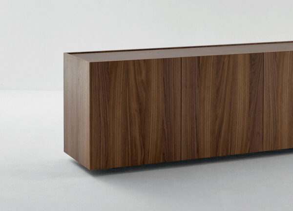 The Bonaldo Outline sideboard by Mario Mazzer for Bonaldo is distinguished by it use of wood, more specifically the warm canaletto walnut finish used for the entire frame.