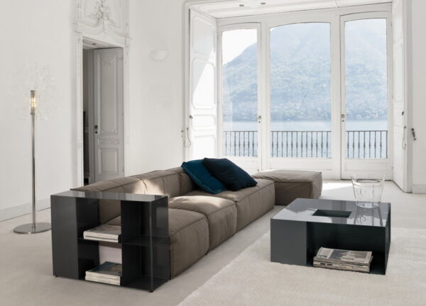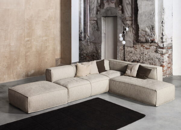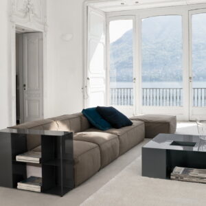 Extremely versatile, the Peanut sofa will blend seamlessly into any space or style. The deep seats with white feather and polyurethane foam padding make it especially comfortable. Compositions can also include certain modules fitted with a sliding mechanism to extend the length of the seat, for further comfort.