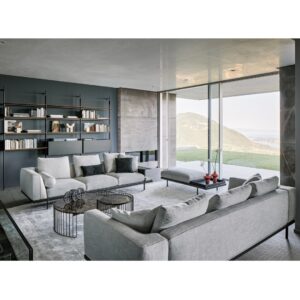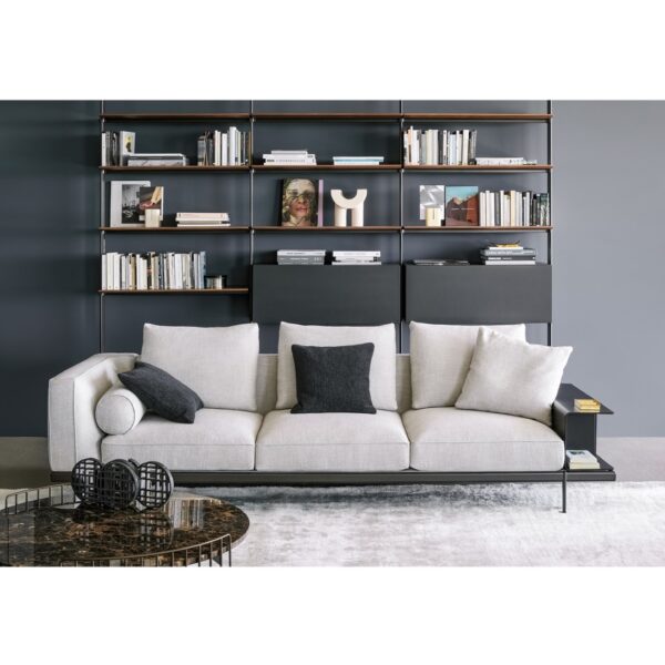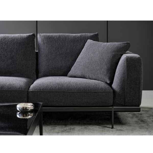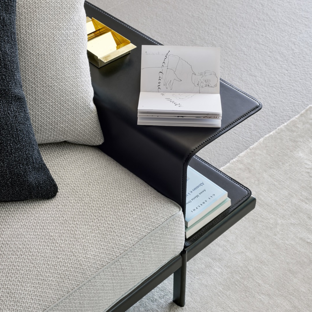 The Phil collection is available as a standard sofa as seen here, or you can create your own bespoke sofa compositions by combining a range of modules, such as corner units, poufs, and chaise longues. It is also possible to add leather accessories such as leather armrests, magazine holder or tray inserts, all distinctive extra elements of this practical, understated design.